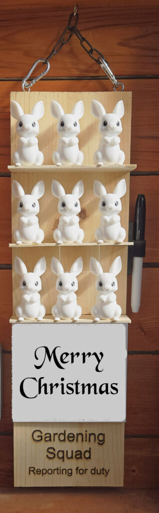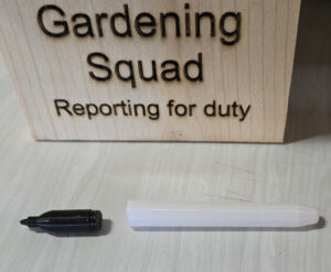 I can’t complain. She will enjoy the gift certificate when spring rolls around, and she liked the whiteboard enough to hang her gardening squad, updated with a real marker, in her garden shed. It was a bonus to me that I was able to utilize my laser and 3D printer in making a Christmas present for her, not to mention the entertainment of watching her try to determine its secrets.